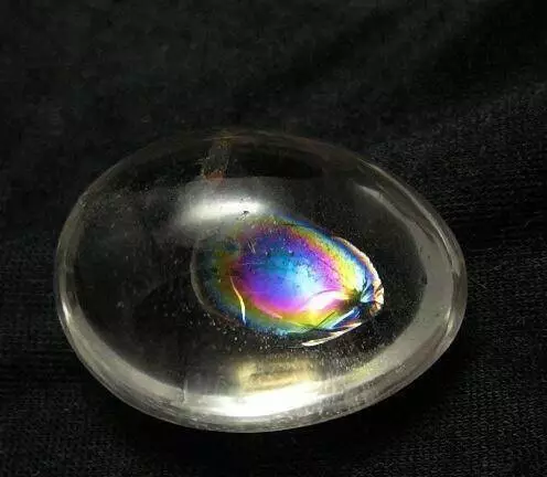 某些宝石晶体,内部有极薄的裂隙面,光线通过裂隙面产生干涉,使裂隙表面呈现七彩光芒的光学效应,称为薄膜干涉效应。