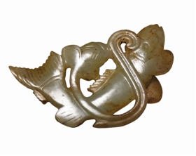 元明时期的“连(莲)年有余(鱼)”(图9)是玉雕的常见题材,乖爱小巧如斯的,倒是不多见。司空见惯的“连(莲)年有余(鱼)”,大多为偌大一条大鱼与莲蓬、莲荷的组合。要不,就是两条大鱼首尾相连的造型。
