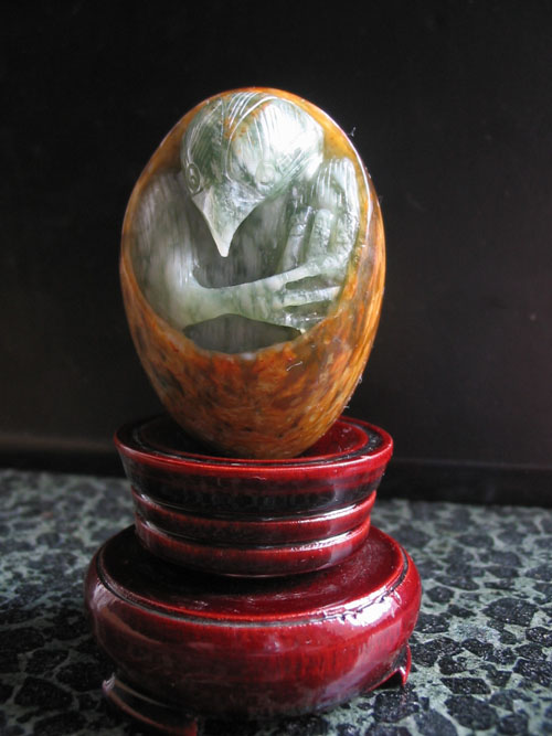 里面的小鸡可不是雕后放进去的,因为鸡蛋剖口两处的切线是向内的,所以不可能把做好的小鸡放进去,很值得一看哦~