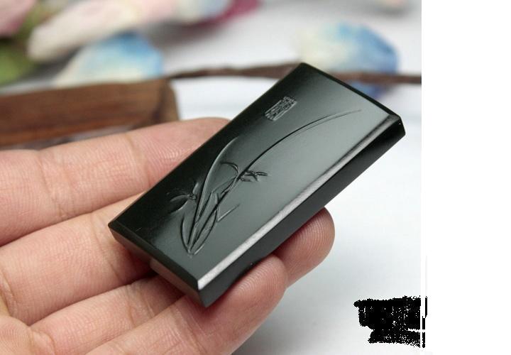 黑碧是新疆常见的玉种,色泽比点墨和聚墨要黑,所以也被称为墨玉。由于其上品色漆黑,极易于传统墨玉中的全墨相混淆,青玉底张的全墨也很容易被误认为黑碧。我个人认为区别的要点是用强光打进去,青玉底张的墨玉可见均匀细密的墨点,而黑碧则可见状如海藻的墨团,传统墨玉在强光紧贴玉面垂直照进去时,在光层与墨质层之间可见透明如薄膜塑料的玉质层。就手感而言,青玉底张的全墨性糯,感觉柔软,韧性好,而黑碧则玉质硬脆、外表光亮。