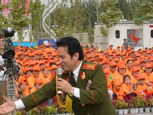 那个握手的是新疆军区文工团的国家一级演员夏米力,他的歌唱的很好呀