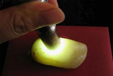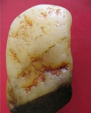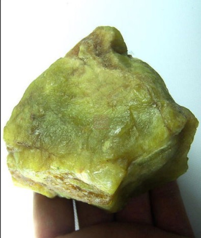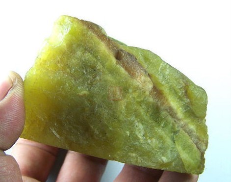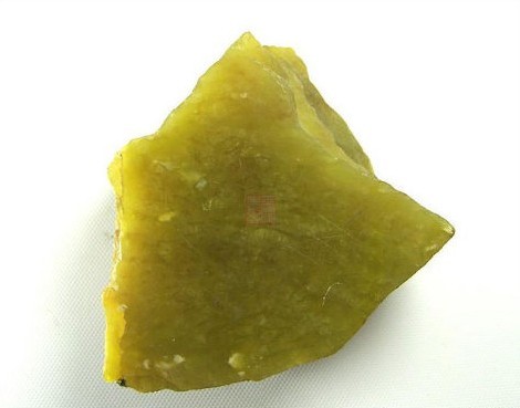此料为辽宁所产老黄秀玉,往往被一些朋友当和田黄玉黄口料卖,这种料与和田玉比硬度不远远不够,而且表明打磨后过于贼亮。请看下图;