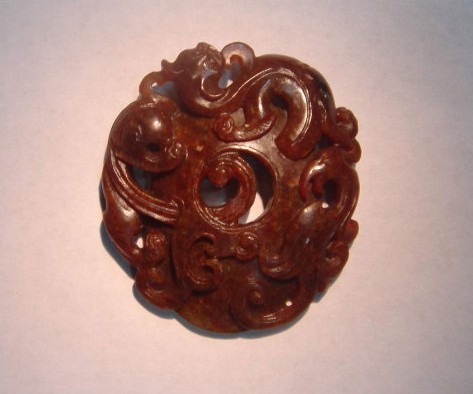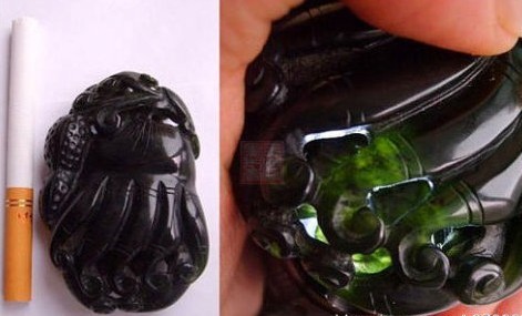 3:目前我们市场上见到许多相似墨玉或神似碧玉的清代玉玺、文房四宝之类的东西,那是什么料呢?那是蛇纹玉(岫玉的一种)又名天山黑宝。其特点为透光呈碧绿色伴有黑点分布。原石更不易分辨,请看以下相片;