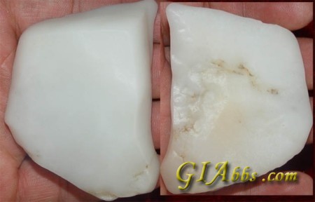 一是:石英岩类玉石,色白、质地较细,外观很像白玉,过去所谓的"京白玉",就是一种细粒石英岩,地矿部门评价的“油石”矿,颗粒很细,但不能称为白玉,石英岩类的玉石硬度比和田白玉高,因此比白玉显出更强的玻璃光泽,在没有仪器检测的情况下,可以据此分辩。