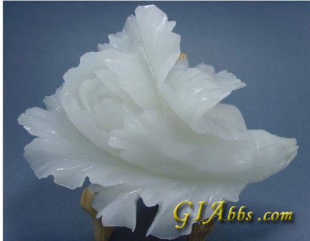 二是:方解石类玉石,外观近似白玉,例如市场上所谓的“阿富汗白玉”就是由方解石形成的玉石,其实就是一种大理石,只不过色很白,半透明,常雕成白菜,寓意象征“百财”。这种玉石硬度很低,普通小刀即能刻动,是不难识别的。