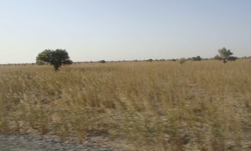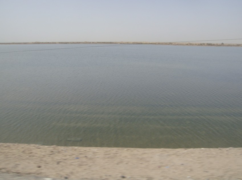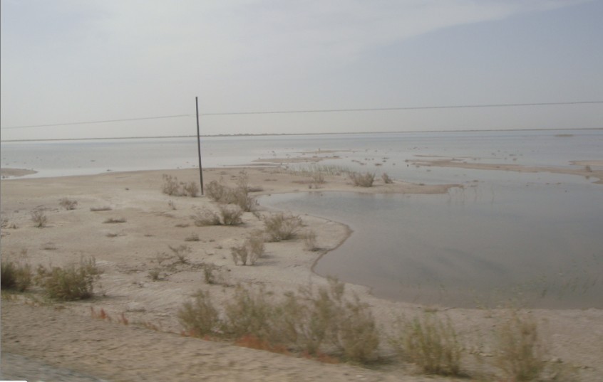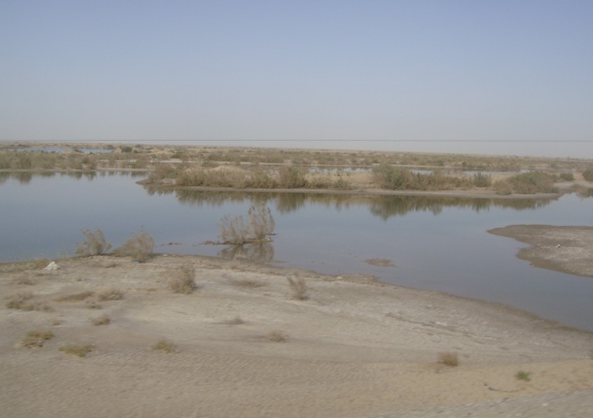 沙漠中那金子般的河水滋润着一望无际、顽强生长着的芦苇