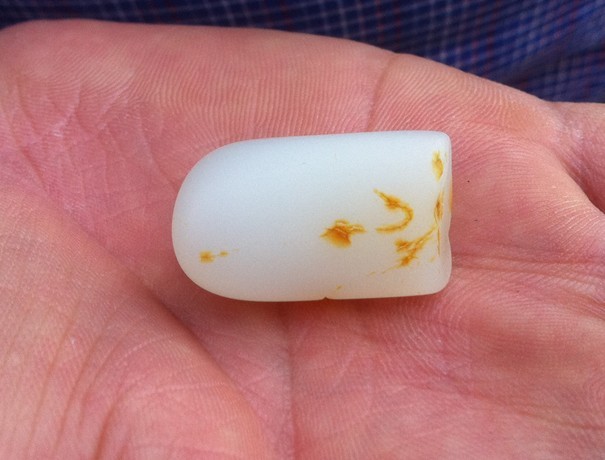 今日在和田市场上看到一块小子料,初上手时感觉还不错,但细细一看,呵呵!问题大了。实话讲,它造的非常不错,一般情况下是很难辨认的。初入市者,那更是要小心哦!我把它拉出来晒晒!供大家借鉴!!