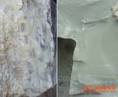 我上手的几快罗甸玉颜色都是白中带灰,少量的一点使纯白色的,还有有一点少量浅绿色的,眼睛直观看上去,料明显的油润度不够,表面干吧吧的。从机器切割后的表面看结构也很细腻的,但大多数料的发闷僵,感觉就是玉中带石,石中有带玉的感觉,没有那中和田玉长见的光泽,显得呆板缺少玉的灵性。