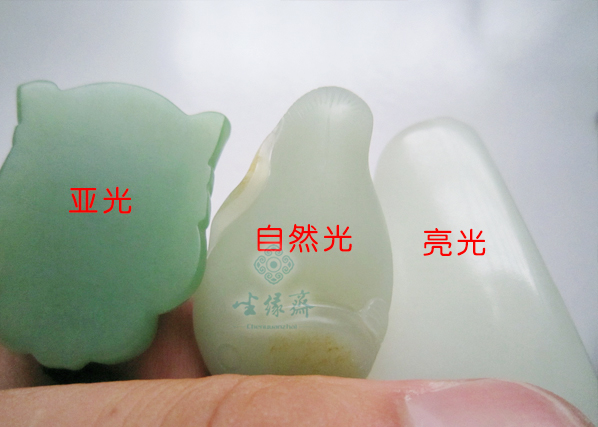 亮光:表面抛得铮亮如镜,很抢眼,光亮感强,反光强,玉质结构看的比较清楚;但会增加白玉的白度。