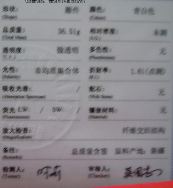 料松、有浆、色泛青,很一般的料子~~自己喜欢就好