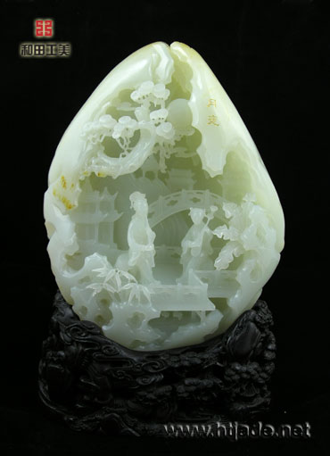 1、相玉审料:设计时,首先要对玉料进行详细的审视,弄清绺裂的分布情况然后经过认真地构思、设计,尽量将绺裂掩盖在山石的石纹组合、树木的枝叶重叠之处和建筑物的栏杆转折等位置上。