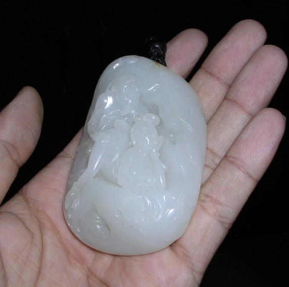 这件东西好象在玉福缘见过,应该叫做老来乐,好象标价十几万元,油脂度不错,白度差一些,雕工是不错但同时也说明这块子料本身不是很完美,需要去除一些东西所以雕成这样。