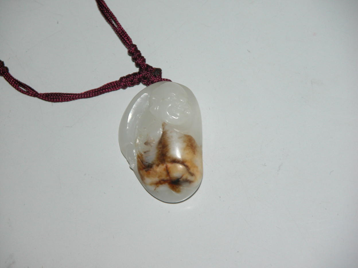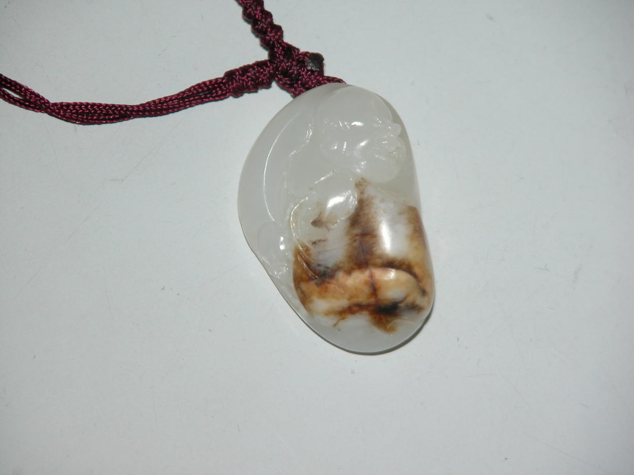 评论:不美。不是有皮的东西就是好东西,只是说一般有皮东西是籽料的概率大一些,但不见得是籽料就是好东西,籽料也要看白度、油脂度、皮色,和怎样利用皮色,上面这件东西初看(一)皮色不好(二)皮色利用的不好(三)好象原来皮色不是这样的,经过了处理,而且色在料里,也说明料子的密度不大,但白度和油脂度还可以,所以说一般,藏不藏两可。自己的一点拙见,见谅!