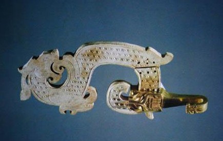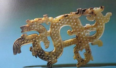 图五 从战国初期开始,龙身转化为多变的s形,基本形式是勾首、凸腹、卷尾,是前代没有的样式。龙身上的纹饰也有很大变化,春秋时开始出现蟠虺纹,战国又出现了满而密的谷纹,后期又加饰蒲纹地。龙身上还饰有各种变化的云纹。纹饰的特点是满而密(图六)。