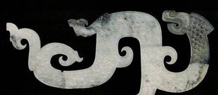 西周时期玉龙基本沿续了商代玉龙的造型,主要有稍薄的片状龙和稍厚的板状龙两种,圆雕龙的造型极为少见。龙身较商代瘦长,龙的背部出现的脊齿纹比商代时期的细密。上唇呈钺形,下唇向内翻卷。龙尾比商代厚而无刃。身上的纹饰较复杂,重环纹、云雷纹等很盛行。改变了商代常用的双勾线技法,以单彻法雕琢,俗称“一面坡”。线条流畅,多弯形和弧形,直线雕琢纹较少。最突出的特点是脑后的蘑菇形角已不多见,眼睛仍为臣子眼,但眼角线拉长,两端带很长的勾形线,形成西周独有的风格。上吻翻卷,口微张不露齿。此时大多不雕腿和足,玉龙构图比前期显得更加舒展,开始出现对称的连体璜形龙。龙身上的纹饰呈图案化,起装饰作用。