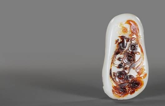 向往田园、大自然是中国传统艺术中的常见情怀,花鸟玉雕恰恰迎合了国人的这种心理需求,因而成为玉雕中一种稳定且重要的题材,并随着历史发展逐渐呈现越来越精美的面貌。王金忠大师以花鸟题材见长,深得院体花鸟尤其是宋代工笔花鸟的精髓。他的作品大多选择带皮色的和田玉籽料,通过对皮色的巧妙处理和运用,既体现出了材质本身的特质,也让作品焕发出了夺目的光彩。他的作品雅丽、灵巧,把艺术的美感和精致的雕琢工艺完美地结合起来,充满了浓郁的文化气息。