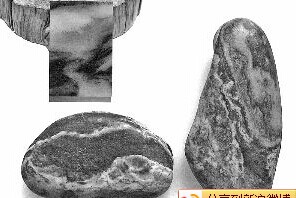 开料师傅告诉他,像这样既棉又僵还有裂的料子很难出手镯,就算做出来也卖不上价,几百元一只也不容易脱手,去掉料钱、工费实在无利可图。事实也确实如此:横一刀竖一刀,不说一刀比一刀烂吧,至少也没啥长进。就在大家都无精打采,几乎就要宣布整块料子报废的时候,玉友突然一声惊叫,开料师傅仔细看了一阵也没有发现有啥值得惊喜的地方,直到玉友手拿两把游标卡尺,合围成一个长方形的框,师傅这才看清楚了:切面上扭曲的黑白二色构成了山影、树林,组成了颇有景致的图案,边上甚至还有一棵树,关键是树上的白僵部分看上去活脱脱就是一只鸟!更神奇的是,恰巧鸟的眼睛部位有一颗黑点,画“鸟”点睛了。这块牌子后来被他以25000元卖出,赚了好几十倍。但直到现在这位老兄还在后悔:“当时不是很懂,要是放到现在,10万也不卖”。