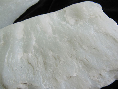 但是现实是很严酷的。已是9月中旬了,开采出的第一批玉料被送下山进入市场价格可以卖到500--800元/公斤。(而在这之前的老矿料只能卖到30--80元/公斤,极个别的单体,最高也只卖过200元/公斤)。而此时的买买提明最焦虑的是;新的矿脉刚刚发现,主矿体也是刚刚炸出,时间却没有了。新矿出现的信息已在社会上扩散,下一个年度他肯定再拿不到承包权了。唯一的办法就是加快开采速度,在有限的时间里,尽可能开采出更多的玉料。在这种背景下,买买提明采用炸药狂轰滥炸,急速下运的方法,从9月到12月大雪已封山的情况下,陆续运出了最后几批玉料。而此时玉矿的脉线也一向大山的腹地下沉,很难再扑捉了。撤离时,买买提明一行炸垮了两侧的山体,掩埋了采矿的痕迹,离开了至今都是未知的矿点。由于这个矿点是以前从未有人到过的昆仑山深处,也是偶然发现,突击开采。又是第一次个人行为,无组织、无预案。所以,没有留下任何地质档案资料。为了与老矿点的料区分,这批料当时就叫“95新矿料”,也就是现在所说得“95于田料”。据事后的统计:这批玉料共出产了8000多公斤。到1996年底,这批玉料已基本销售完毕。其走向:矿主本人留了大约300-500公斤,市场上陆续流通了大约4000余公斤,和田工美总计收购了4000余公斤。这批玉料最大的单体100余公斤,(单体大块的很少只有几块),最小的单体只有30-50克。在1996年底有记录的销售价格是:500--4500元/公斤。(现在据说价格已可以达到30万以上)。由于开采条件和当时的背景情况,这批玉料的绺裂比较多,特别是单体稍大点的内部绺裂都比较严重。(这不是有人说的什么书页状结构,而是开采时的炸药爆破所致。)主矿脉中出的小块的一般都非常好,结构致密,洁白无瑕,真可谓是冰清玉洁。当时当地的老乡形容这种玉料叫冰糖料。这种料还有一个特点:毛矿料时,看上去略闪点青,但制作完成打磨过后,其洁白、温润、致密、油腻,讨人喜爱的程度,是许多高等级籽料也难以攀比的。应该说这批玉料是近代和田玉开采史中,有记载的最好的一批山料。