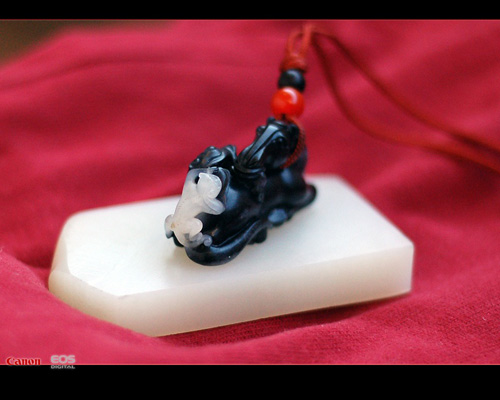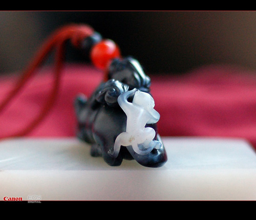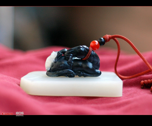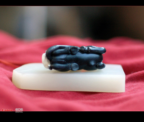 马上封侯. 上海一流工手精作.重30克.和田黑白玉籽料.全身乌黑缙?肉质细腻.马上的猴儿白度达到一级.这在黑白玉中算很少见.臀部带少许皮色.黑白分明.看着就很舒服!!哈哈!!