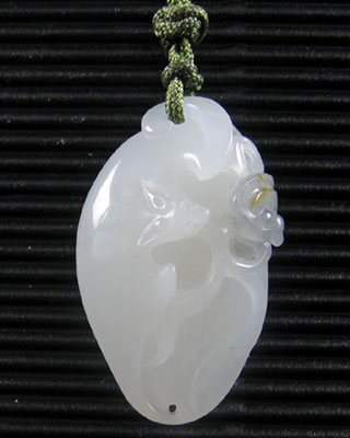籽儿的边缘,一条简练的线条是展翅的蝙蝠,墨玉的部分巧琢灵芝.从此"福至