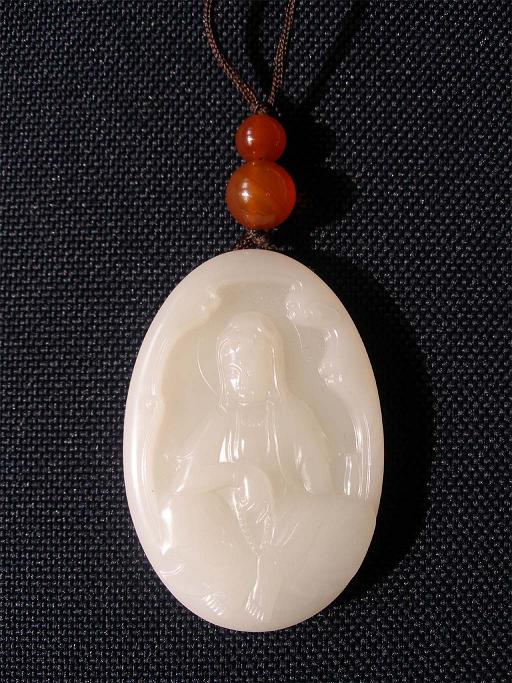 这是苏州专门雕刻观音的张建超师傅的作品。牌料润度一流,柔白细腻,坚实缜密,光洁莹润,精光内敛,手感温润,真正的仔料羊脂。雕刻的也细腻到位,十分成功。观音面部饱满,慈祥、端庄、恬静,令人可亲可敬。